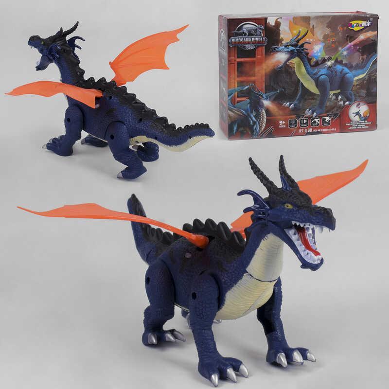 ## Великолепная модель огнедышащего дракона ждет Вас, чтобы устроить веселые приключения в стиле средневековья. Дракон выполнен в насыщенно синем цвете, по всему тело расположены чешуйки, а глаза окрашены в ярко желтый цвет. Он уверенно ходит на четырех ногах, при этом издавая реалистичные звуки ходьбы и пронзительные ревы. К особенности модели относится извергающий пар, который дракон выпускает из своего рта. Чтобы активировать функцию, в набор входит специальная пипетка, которая поможет залить воду в специально отверстие между рогами. Эффекты модели: - реалистичные звуки ходьбы и рева; - спина по бокам светится: синим, белым, зеленым, красным, голубым, фиолетовым цветом; - рот светится красным цветом. В комплектацию входит: - дракон; - хвост; - 2 крыла. Работает от 3х батареек типа «АА» не входят в комплект. Размеры/габариты - длинна (см): 38 см - ширина (см): 42 см - высота(см): 21 см Размер упаковки: 27 см × 11 см × 21 см Упаковка: Коробка Возраст: от 3 лет Проверка и упаковка перед отправкой. Отправка ежедневно. Варианты оплаты: Оплата наложенным платежом при получении на Новой Почте без предоплаты. Наличными при доставке. Предоплата на карту - оплачиваете только стоимость товара.