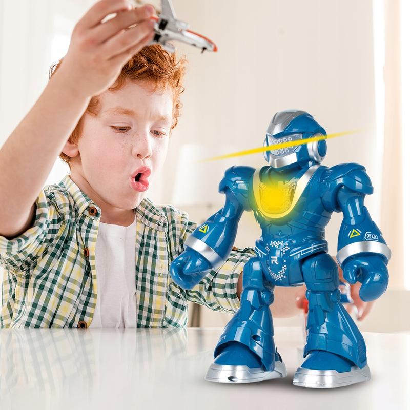 ИНТЕРАКТИВНЫЙ РОБОТ С ДИСТАНЦИОННЫМ УПРАВЛЕНИЕМ ДЕТСКИЙ РОБОТ НА АККУМУЛЯТОРЕ Параметры: Размеры упаковки: 19 х 9,5 х 27 см. Размеры робота: 18,5 x 9 x 23 см. Размеры пульта дистанционного управления: 6 x 2 x 12,5 см. Источник питания: Робот 3x AA (не входит в комплект), Пульт дистанционного управления 2x AA (не входит в комплект) Возраст: от 6 лет Танцующий и поющий робот – отличная интерактивная игрушка для каждого ребенка. Робот имеет множество различных функций, которые делают веселье бесконечным. Робот управляется с помощью пульта и имеет различные функции: движется вперед танцует играет музыку поет разные песни на английском языке поворачивается налево поворачивается направо Во время движения робот загорается и мигает. Это интересная игрушка для каждого ребенка, интересующегося робототехникой, она поможет пробудить интерес вашего ребенка к этой области науки. Пульт дистанционного управления, входящий в комплект, имеет размеры, адаптированные под маленькие детские руки, и В них удобно помещается.