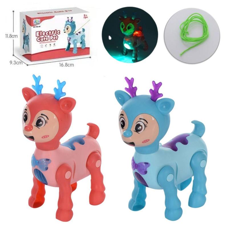 766-4а оленя, 2 кольори, світло, звук, ходить, повідець, на батарейках у коробці