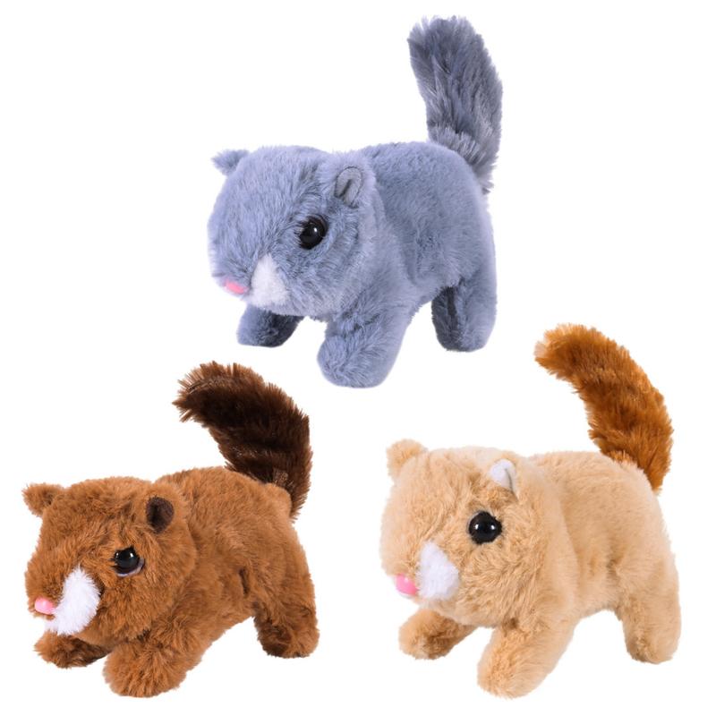 23904 с мягкая игрушка, белка ходит, звук, двигает носом и хвостом 3 микс 15*8*10см