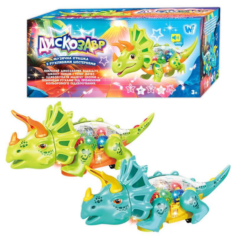 Исследуйте мир с Трицератопсом! Предлагаем вам увлекательную игрушку – яркого Трицератопса от "WToys", который не только развеселит вашего ребенка, но и поспособствует развитию важных навыков. Эта чудесная игрушка станет незаменимым компаньоном в игре, ведь её удивительный дизайн с прозрачным корпусом позволяет наблюдать за цветными шестернями, которые вращаются под ритмичную украинскую песенку. Трицератопс подсвечивается, создавая неповторимую атмосферу в комнате, а его движения привлекают внимание малышей. Игрушка имеет колесо свободного хода, что делает игру еще более динамичной и интересной. Особенности: - Яркое подсвечивание для создания сказочной атмосферы; - Веселая песенка на украинском языке, добавляющая эмоций; - Движущиеся шестерни, видимые через прозрачный корпус; - Колесо свободного хода для легкого передвижения; - Работает от 3-х батареек типа “АА” (батарейки не входят в комплект).