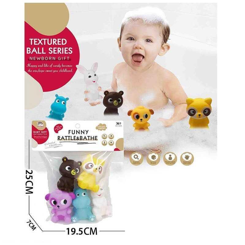 Веселые резиновые зверята для малышей Представляем вам набор из пяти ярких резинок, которые поднимут настроение вашему ребенку и сделают время купания еще более увлекательным. Эти милые зверята высотой 9 см станут отличными спутниками во время водных игр, ведь они не только привлекательны на вид, но и громко пищат, что поможет малышу развивать слуховые навыки. Резиновый материал обеспечивает безопасность во время игры, а плавучесть игрушек позволяет придумывать множество забавных игр. Добавьте веселья в ванную комнату и успокойте вашего малыша во время купания с этими удивительными зверятами! Основные характеристики: - В наборе 5 резинок; - Средняя высота - 9 см; - Каждая игрушка имеет писк; - Безопасные красители и материалы; - Чудесный дизайн в виде зверят.