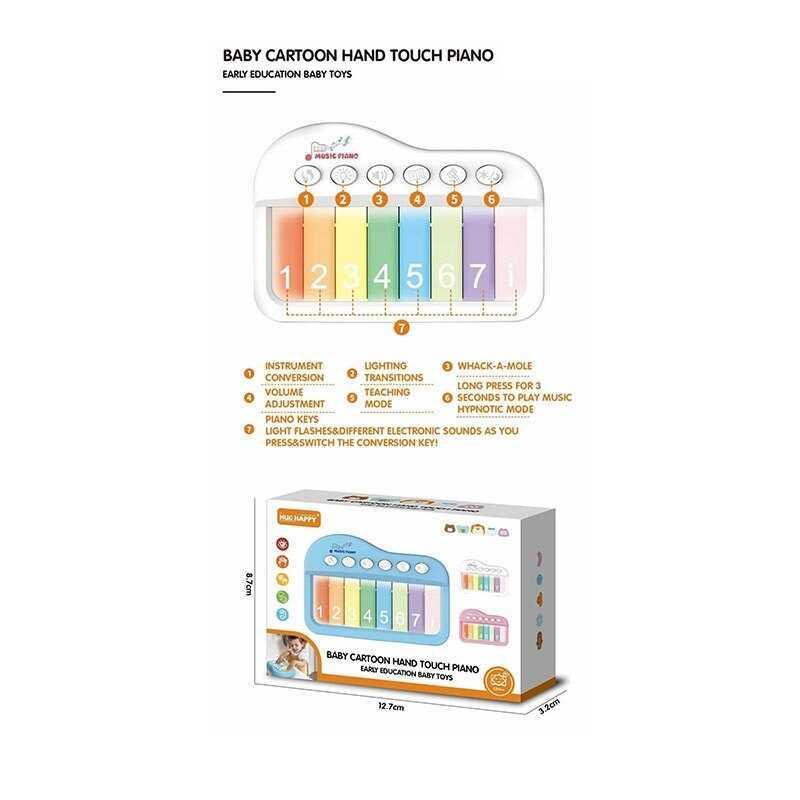 Интерактивное детское пианино для развития музыкальных навыков Компактное пианино YK 7018 C станет отличным подарком для ребенка, сочетая музыкальные мелодии, обучающие функции и игру на скорость реакции. Благодаря подсветке клавиш и нескольким режимам работы, ребенок сможет весело проводить время, развивая слух и координацию. - Размер: 12.5х3х8.5 см - Подсветка клавиш для привлечения внимания - Несколько игровых режимов, включая режим обучения - Долгое нажатие активирует режим успокаивающей музыки - 8 клавиш для исполнения простых мелодий - Игра на скорость реакции для развития внимания - Регулировка громкости для комфортного звука - Работает от 3 батареек AAA (не входят в комплект) - Изготовлено из прочного пластика