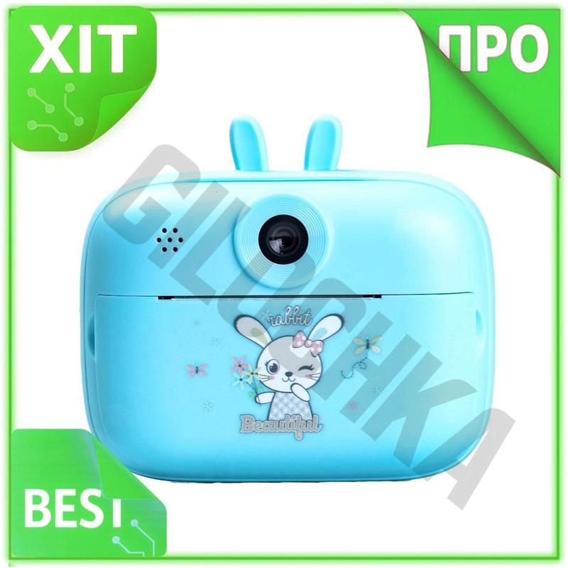 Ve детский фотоаппарат с мгновенной new version печатью зайка синий для детей фотокамера д...