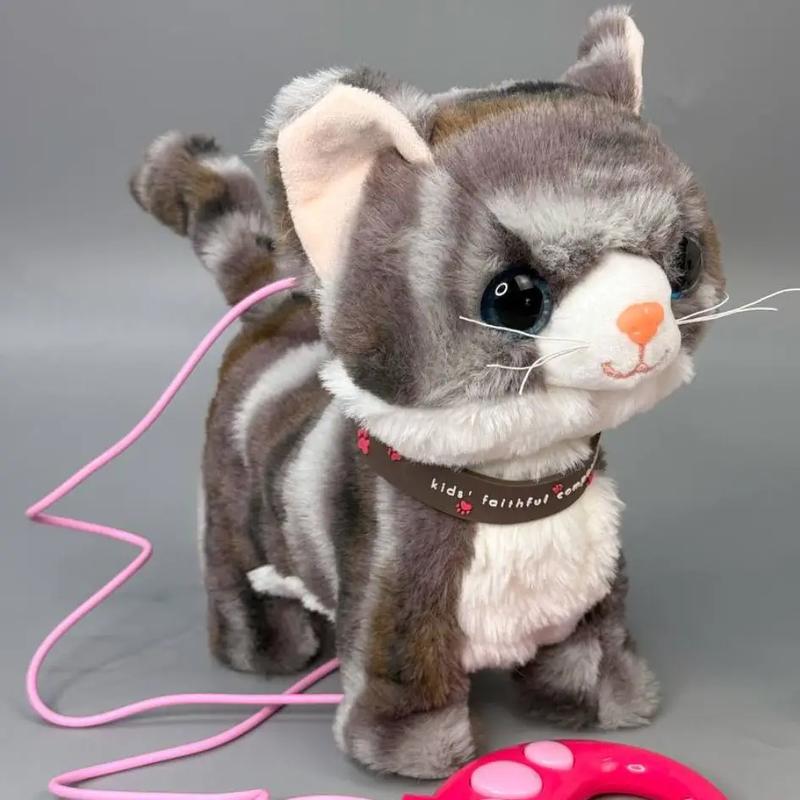 Интерактивная кошка на поводке виляет хвостиком поет песни