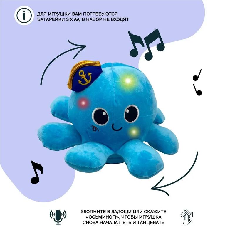 Описание Мягкая интерактивная игрушка осьминог из серии FUR STAR может танцевать и петь! После включения игрушки осьминог танцует и вращается под мелодийную музыку, светится различными огнями. После завершения музыки активируется голосовой режим. Теперь, чтобы музыка играла снова, надо плескать в ладони или кричать: «Восьминог!» Если нажать кнопку «Включение» еще раз, активируется режим записи. В этом режиме осьминог повторяет все, что ему говорят. Если задать осьминогу: «Как дела?», он повторит этот вопрос. Такой забавный и веселый осьминог точно понравится вашему ребенку и станет отличным подарком. Особенности SKU 740073160 Тип Интерактивная игрушка Дополнительные функции Luminous, Interactive Вес продукта, g 358 Цвет Синий Высота игрушки - см 14 Пол ребенка Унисекс Материал ABS-пластик, полипропилен, Полиэстер Минимальный возраст ребенка 3 года Максимальный возраст ребенка 6 лет Размер батарейки игрушки AA Страна происхождения Китай