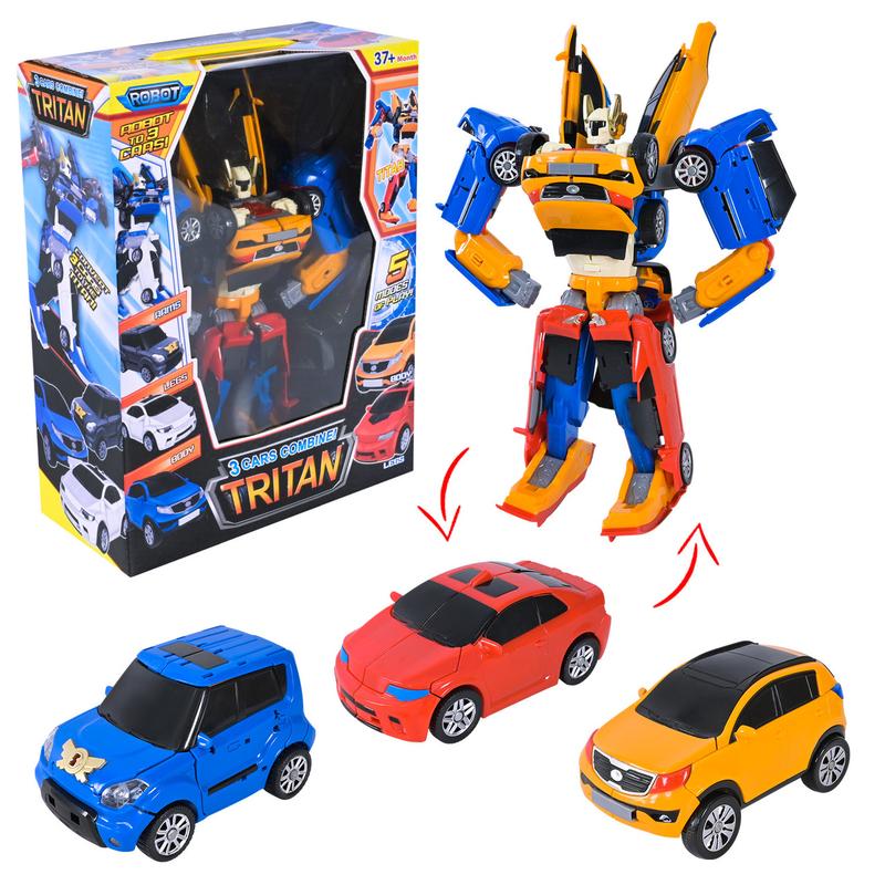 Три машинки - один робот! Эта игрушка удивит даже самых требовательных маленьких инженеров. Три отдельные машинки могут не только кататься самостоятельно, но и соединяться между собой, образуя мощный труд. Яркая трансформация, интересная игра и множество возможностей для фантазии — все в одном наборе! Особенности: • Уникальная трансформация - 3 отдельные машинки легко объединяются в одного крутого робота! • Стильный и современный дизайн – яркие цвета и привлекающие внимание детали. • Компактный размер - идеален для игры дома и в дороге. • Прочный и безопасный пластик – выдерживает активные игры и приключения. Развитие: творческое мышление, мелкая моторика, пространственное мышление, координация движений, воображение. Упаковка: коробка. Размеры: Размеры упаковки: 29.5х13.5х38.5 см Размер машинки: 13х8х7 см Размеры робота: 23х13х36 см