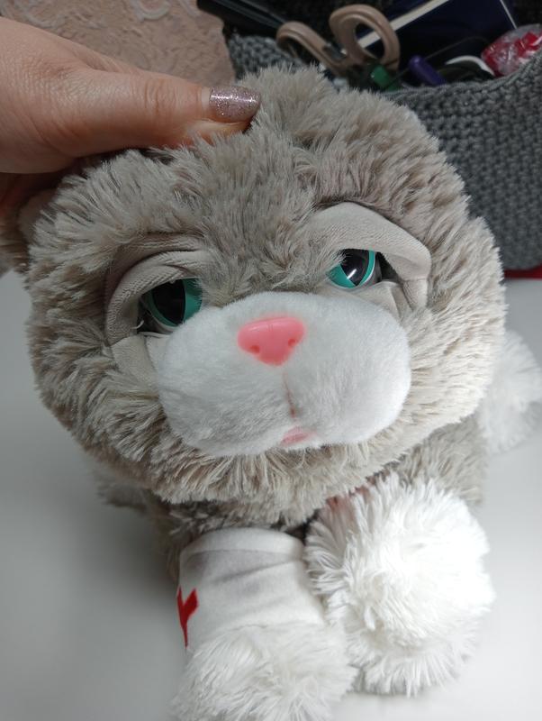 Интерактивная игрушка котик Little town, имеет три кнопки действия с ним, на лапке нажимаешь он мягчкнет от боли, повязкой лечит, на голове засыпает, на спине мурлычит. Игрушка в хорошем состоянии, все работает, блончок включает и исключает котика.