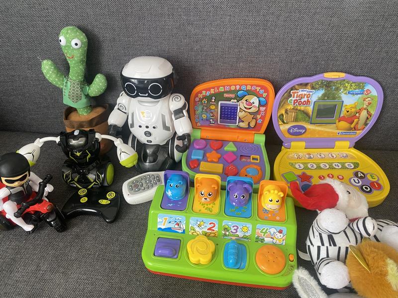 Великий набір іграшок ,все робоче,стан дуже хороший ,сам робот коштував 1800(пульт без кришечки там де батарейки,провід від зарядного до робота відсутній,потрібно підібрати самому)