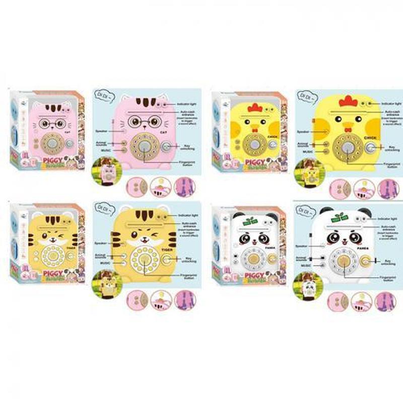 Інтерактивна іграшка-скарбничка "Тваринка", 4 види. Дитячий електронний сейф з ключем. Є музика, світлові та звукові ефекти. Є довга ручка для переносу. Розмір - 17х8,5х20 см. Живлення - батарейки. Матеріал - пластик. Упаковка - коробка. Розмір - 21,5х9,5х25 см.