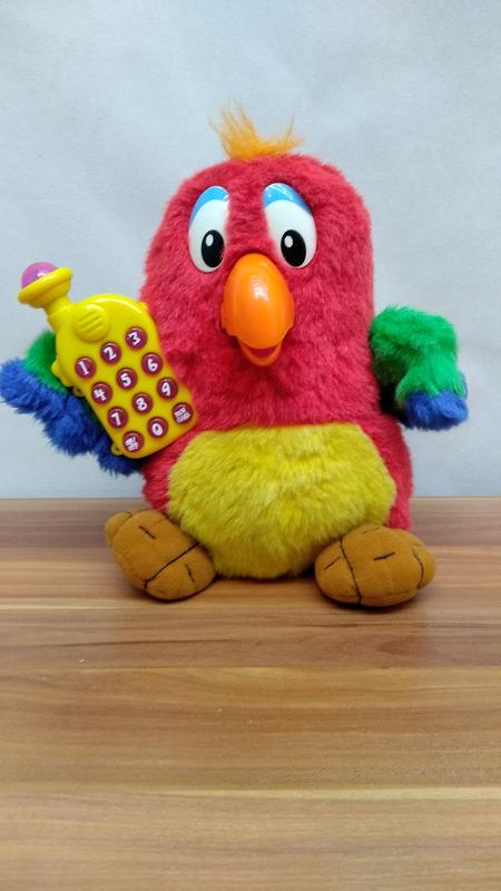 Папуга в дуже доброму стані. Говорить, кнопки світяться при натисканні. На чотири пальчикових батарейки. Висота 27см