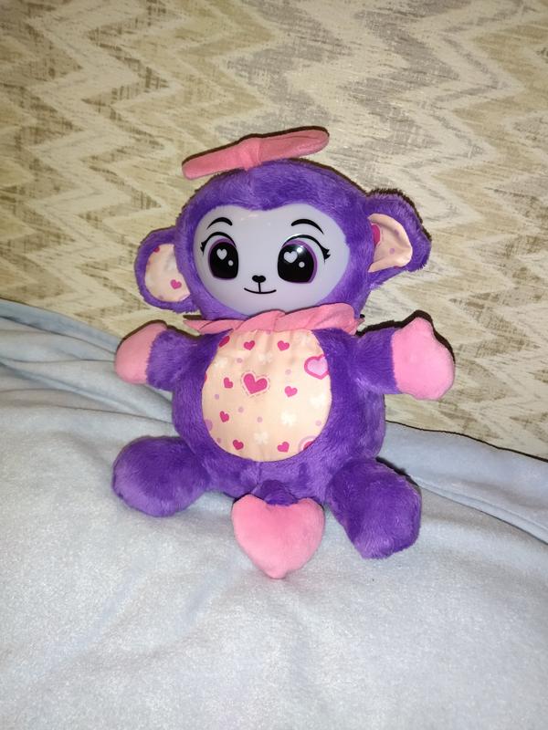 Меховий мячик, который превращается в обезьянку, говорит, смеется, поет, меняет цвет лица, очень интересная, может еще что-то делает, не разобрались) Vtech,