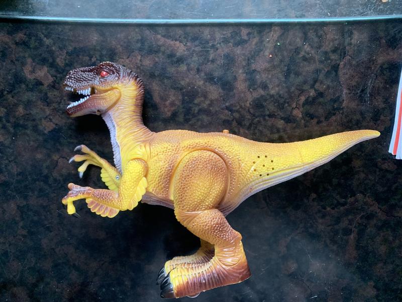 Динозавр в ідеальному стані, працює від батарейок. Їздить, світиться, видає звуки.