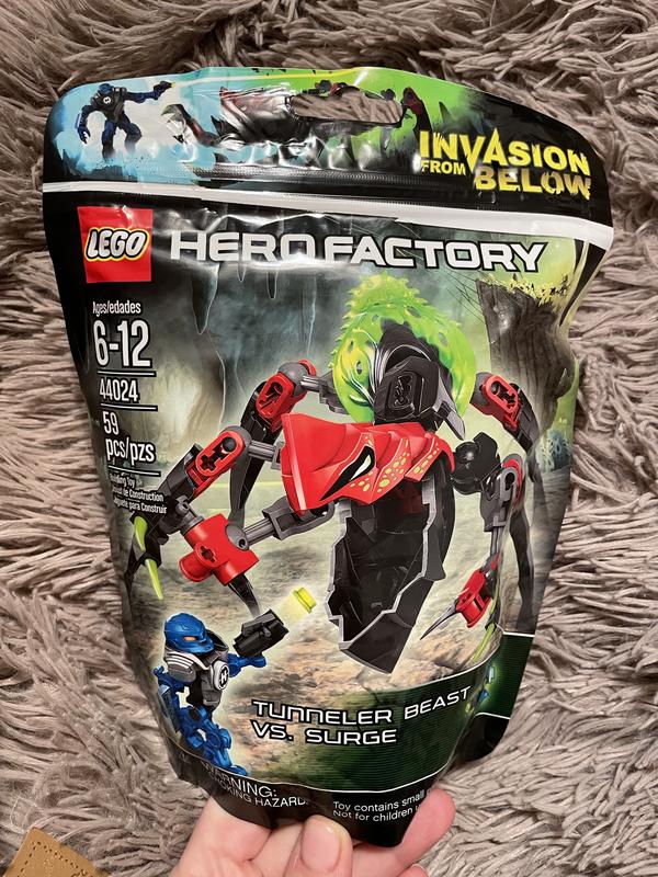 LEGO Hero Factory Чудовисько-гірничопрохідник проти Сурж. Приготуйся до битви, СУРЖ! ЧУДОВИЩЕ-ГІРНИЧНИК можливо ще навіть не повністю вилупився зі свого кокона, але навіть новонародженим цей монстр вже дуже грізний противник. Його кислотні пазурі можуть пробивати скелі та створювати підземні печери, щоб побудувати засідки, звідки він зможе атакувати ворога своїми отруйними клешнями. Стріляй із клік-шутера, щоб відбитися від могутнього чудовиська. Остерігайся його потужних щелеп і виклич по рації підкріплення, адже тобі знадобиться допомога інших героїв. У набір входить міні-робот СУРЖ зі зброєю та аксесуарами. Пересилаю