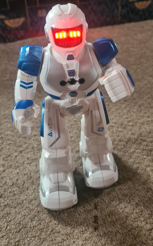С возможностью программирования, с звуком и светом. Умеет ездить, переставлять ноги, танцевать. Реагирует на движения