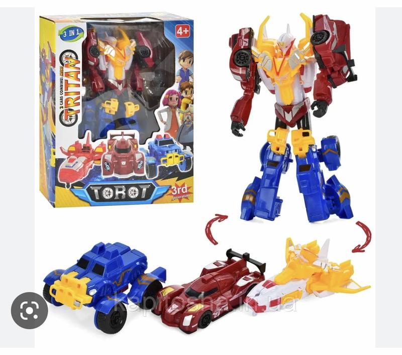 Тобот Трітан - оригінальна іграшка, яка містить у собі одразу кілька варіантів гри. Відразу три машинки інтегруються і створюють одного нового персонажа - робота з потужними рухливими кінцівками. Одна машинка є тілом робота, друга створює йому руки, а третя перетворюється на ноги Тритана. Розібравши Тритана ви отримаєте 3 окремі транспортні засоби! Характеристики: Упаковка: Картонна коробка Країна виробник: Китай Матеріал: Пластик Колір чорний Висота трансформера: 24 см Габарити упаковки: 28 х 11 х 22 см Вік: від 5 років