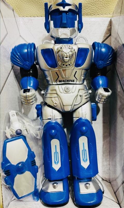 Робот на батарейках, с оружием, ходит, поворачивает корпус, музыкальный, светится, на батарейках, в коробке 34*18*10 см. Цена за 1 шт