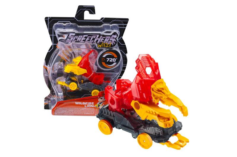 Машинка-трансформер Screechers Wild (Скричерс Вайлд) S4 L0 Вайлдфаєр Лаен трансформируются в фантастическое существо прямо в воздухе. Почему стоит купить: обладает прочной конструкцией с надежными креплениями и выполнена из высококачественного материала делает переворот на 720° и трансформируется в мистического льва даже без диска для трансформации достаточно просто запустить машинку направляя ее на магнитный диск или наоборот запустить диск в машинку чтобы трансформировать героя обратно в машинку, нужно аккуратно прижать все детали и закрепить, и вы снова можете вступать в бой можно участвовать в батлах и стать самым крутым скричером новые серии о приключениях скричеров всегда на Youtube В комплекте: машинка размером 10 см коллекционная карточка Производитель: Screechers Wild. Рекомендовано для детей от 5 лет.