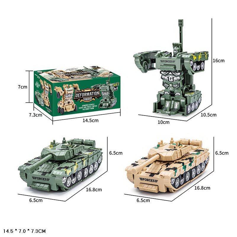 Трансформер Танк 2 кольори, в коробці 14,5 * 7 * 7,3 м Увага. Виробник залишає за собою право змінювати комплектацію, колірну гаму та характеристики товару без попереднього повідомлення. .