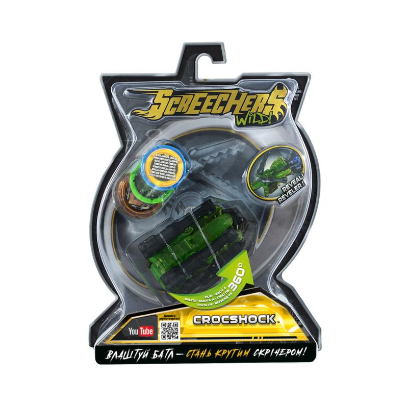 Screechers Wild! - це перші в історії машинки, які роблять сальто на 360 градусів і трансформуються в дикого звіра прямо в повітрі. Можеш собі таке уявити? Влаштовуй неймовірні пригоди, видовищні бої і фантастичні гонки! Кожен скрічер трансформується в тварину з супер силою, потрібно тільки запустити машинку направляючи її на магнітний диск або навпаки запустити диск в машинку, при зіткненні з яким вона зробить перекид в повітрі і перетвориться на звіра. Скрічер Крокшок трансформується в крутого крокодила. Для того, щоб трансформувати тварину назад, потрібно витягти диск і закріпити пружинку знизу машини і ви знову можете вступати в бій. Диск має гладку поверхню для бездоганного ковзання і гумову поверхню для фіксації на місці. Випробуй свого скрічера, бийся за скрічер-паливо і перемагай! Машинка-трансформер Крокшок має міцну конструкцію з надійними кріпленнями і виконана з високоякісного матеріалу. У наборі SCREECHERS WILD! L 2 - Крокшок: машинка 3 диска Саме час почати збирати всю колекцію Диких Скрічерів! Бери участь в баттлах - стань крутим скрічером! Рекомендовано для дітей від 6 років.