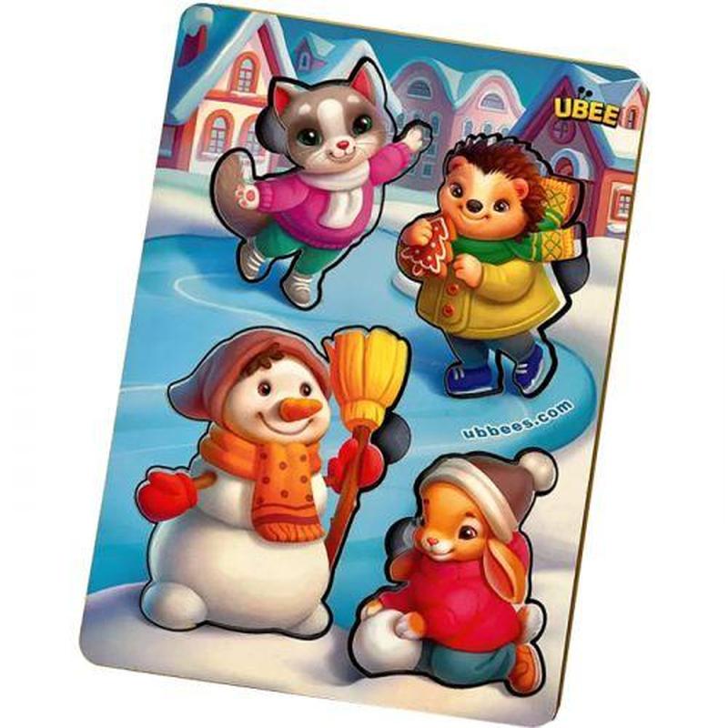 Деревянный вкладыш в зимней тематике. Каждую фигурку нужно поставить в предназначенную для нее ячейку. Вставляя фигурки на места, ребенок будет дополнять картинку, изображенную на планшете. Поможет развивать мелкую моторику, логическое мышление, координацию движений, внимание и память. Изготовлено из качественных и безопасных материалов. Бренд: Ubumblebees Упаковка: Пленка Цвет: Разноцвет Вес в упаковке: 77 г Габариты в упаковке: 0.5 x 16 x 11.5 см Габариты без упаковки: 0.5 x 16 x 11.5 см Cтрана производитель: Украина Материал: Дерево Комплектация: Планшет, 4 фигурки