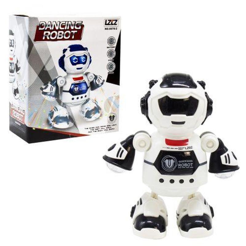 Яркий пластиковый робот. Умеет весело и подвижно танцевать, во время танца передвигается на ножках и двигает бёдрами, имеет очень яркую разноцветную подсветку, играет музыку. Светятся глазки. Работает на батарейках._ Бренд: LZCZ Упаковка: Коробка Цвет: Чёрно-белый, сине-белый Тип эл-тов питания: Батарейки (АА) Кол-во эл-тов питания: 3 Эл-ты питания в комплекте: Нет Вес в упаковке: 370 г Габариты без упаковки: 18 x 20.5 x 8.5 см Cтрана производитель: Китай Материал: Пластик Комплектация: Робот Распродажа в интернет магазине EgorKa. Дополнительная скидка 5% при заказе по телефону 380 (98) 045-44-2190