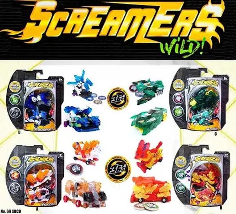 Дикий Скричер 69 ABCD Скричеры — это не простые мини-машинки, как может показаться на первый взгляд. Дикие Крикуны всецело и полностью подчиняются волшебным дискам, которые являются пусковым механизмом удивительных трансформаций. Как только скричеру удается словить диск, процесс уже не остановить! Машинка-трансформер делает оборот на 360 градусов, и в одно мгновение превращается в воинственных созданий, которые являются персонажами мультсериала Screechers Wild. Машинка разгоняется, ловит специальный диск, делает кувырок и самостоятельно трансформируется прямо в воздухе. Обратно в машинку игрушка собирается вручную. Несколько движений - и она опять готова к новому кувырку.