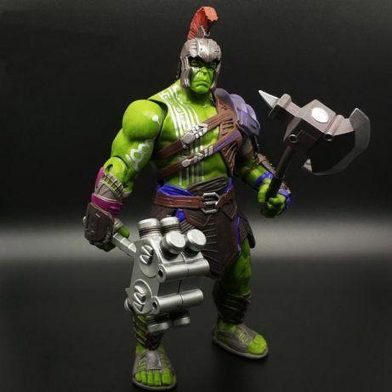 Халк Гладиатор - фигурка Халка со шлемом, молотом и топором по фильму Тор: Рагнарек (2017) Игрушка поставляется без фирменной упаковки, т.к. является сборной и её части идут с другими фигурками в комплекте из фильма Тор: Рагнарек. У статуэтки снимается шлем. Топор и молот могут вставляться в обе руки. Модель подвижная, множество точек артикуляции. Материал: пластик Высота: 20 см Артикул: VA-801370821