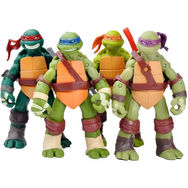 Высота: 12 см Каждая фигурка имеет множеством точек артикуляций (руки и ноги можно вращать на 360 градусов, вращающаяся шея), что позволят придавать Черепашкам любую боевую стойку и сделает игру Вашего ребенка более увлекательной. Также в комплект входит излюбленное оружие каждого из персонажей. ВНИМАНИЕ!!! Все фигурки совершенно новые и выглядят точно также как и на фото, но продаются без красочной розничной упаковки, а запаяны в целлофановые пакеты.