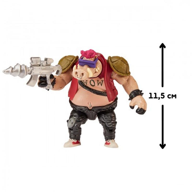 Приготуйтеся до знайомства з фігурками та аксесуарами Mutant Mayhem, створених за мотивами нового анімаційного фільму 'Черепашки-Ніндзя'! Будьте обережні, не кажіть нічого, що може розлютити цього хлопця! Бородавочник-мутант Бібоп не лише має вбивчі окуляри та ретро-магнітофон, він ще й любить битися зі стилем! Коли Суперфлай планує знищити Черепашок і влаштувати мутантський хаос, Бібоп і його небезпечний друг по злочинах, Рокстеді, готові і хочуть вступити в бій! Нові пригоди чекають на вас! Фігурка лиходія з 13 точками артикуляції внесе різноманітність у гру та колекцію! Фігурки допоможуть розвинути у дітях: - Емоційний розвиток; - Вміння грати. У набір входить: - Рухлива фігурка Бібопа (11 cm); - Бластер; - Окрема стійка для зброї. Зберіть всі фігурки TMNT Mutant Mayhem для вашої штаб-квартири черепашок- ніндзя! Рекомендовано для дітей віком від 4 років.