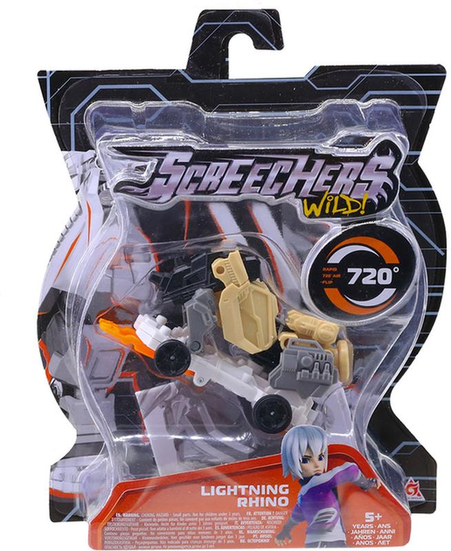 Screechers Wild - это первые в истории игрушки-машинки, которые делают сальто и трансформируются в фантастическое существо прямо в воздухе. Можете себе такое представить? Встречайте новый 4 сезон. И невероятных героев с новой суперспособностью. Скричер Лайтнинг Райно делает переворот на 720° и трансформируется в мистического носорога даже без диска. Устраивайте невероятные приключения, зрелищные бои и фантастические гонки. Каждый скричер трансформируется в животное с суперсилой, нужно только запустить машинку по ровной поверхности. Она сделает кувырок в воздухе и превратится. Для того чтобы трансформировать героя обратно в машинку, нужно аккуратно прижать все детали и закрепить, и Вы снова можете вступать в бой. Испытайте своего скричера, соревнуйтесь за скричер-топливо и одерживайте победу. Машинка-трансформер обладает прочной конструкцией с надежными креплениями и выполнена из высококачественного материала. Самое время начать собирать всю коллекцию Диких Скричеров. Участвуйте в баттлах - станьте крутым скричером. Рекомендованный возраст: от 5 лет Средний размер игрушки: 10 см В наборе: - Машинка-трансформер - Коллекционная карточка Вид игрушки - Трансформеры Тип - Один предмет Особенности - С аксессуарами Размеры - 16 х 6 х 20 см (в упаковке) Комплект поставки - Скричер Коллекционная карта