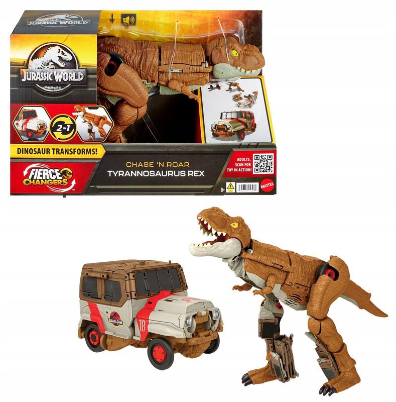 Ты можешь играть любимым тираннозавром Рексом длиной в 40 см, а потом за простых 28 шагов, он превращается в мощный 18-сантиметровый внедорожник. На коробке есть специальный QR-код, который покажет инструкцию по правильной трансформации. Это самая большая, самая сложная и эффектная игрушка из серии трансформеров по мотивам фильма «Мир Юрского периода». Отсканируйте QR-код на упаковке для видео-инструкции трансформации! Комплектация: динозавр-трансформер. Характеристики: Размер упаковки: 37 х 23 х 14 см. Рекомендованный возраст: от 8 лет; Длина игрушки: 35 см; Материал: пластик; Бренд: Mattel