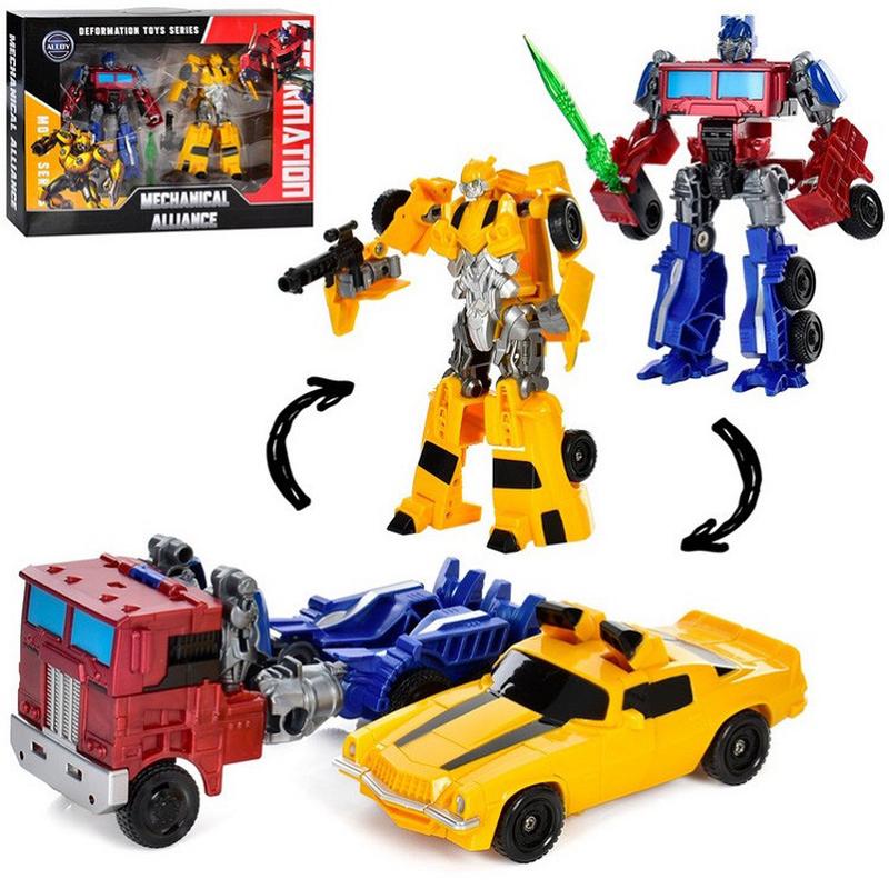 Игровой набор роботов трансформеров оптимус прайм и бамблби с оружием автоботы 18 см.