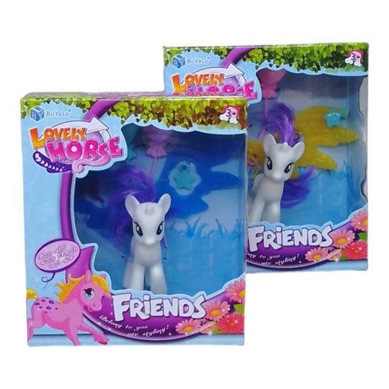 Игровая фигурка единорожка порадует малыша. В комплекте есть милая лошадка пони-единорог, съёмные крила, 2 пластиковых воздушних шарика. Высота лошадки - 7 см. Выполнена из прочной резины. Игри с подобними фигурками помогут развивать у ребенка воображение, образное мышление. Укомплектован набор в красивую картонную коробку со слюдой. Есть разные виды в асортименте. Бренд: BoYaLe Упаковка: Коробка Цвет: Разноцвет Вес в упаковке: 75 г Габариты в упаковке: 16 x 14 x 5.5 см Cтрана производитель: Китай Материал: Комбинированный Комплектация: Пони, аксессуары