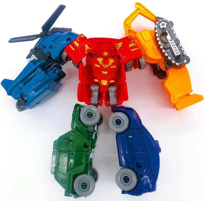 Трансформер Тобот Tritan трансформується в 5 різних транспортних засобів. Всього за кілька кроків Тобот Rocky екскаватор і Тобот Apache вертоліт трансформується в праву та ліву руки, Тобот K джип і Тобот Tornado поліцейська машина ноги робота, а Тобот Vulcan пожежна машина стає тулубом робота. У робота рухомі руки та ноги. Розмір коробки 25 * 10 * 26 см.