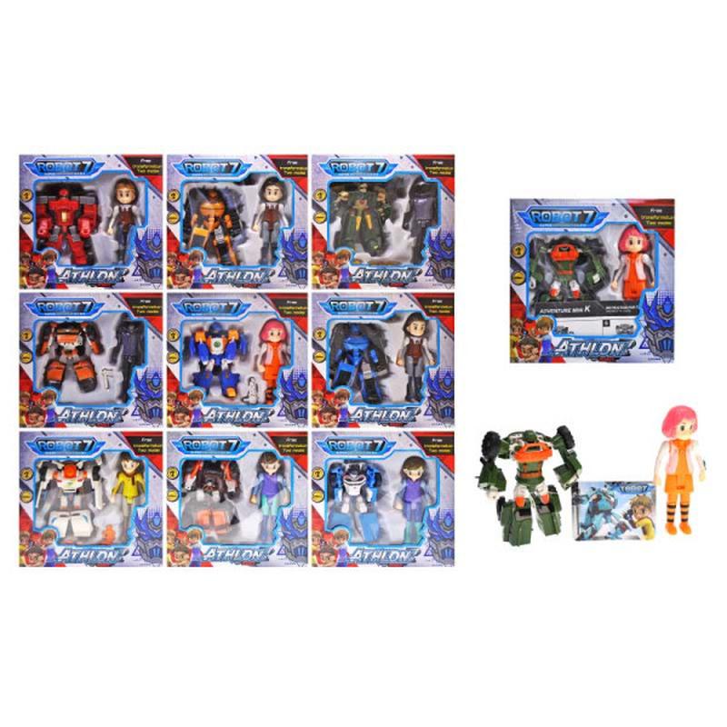 Пластиковый робот-трансформер может трансформироваться в технику передвижения. Высота робота 12 см, высота фигурки 14 см. Фигурка имеет подвижные части тела, также есть кнопка сзади, при нажатии на которую светится лампочка на груди. Товар представлен в 10 видах.