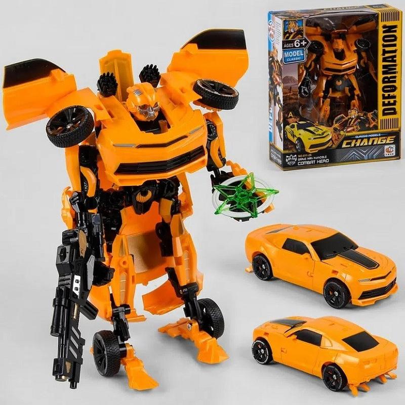 Робот трансформер Бамблби придется по душе всем поклонникам популярного фильма, а также мультфильма "Трансформеры". Всего за несколько простых движений робот трансформер превращается в машину желтое Chevrolet Camaro и наоборот. Любой мальчишка будет рад получить такой подарок. Высота робота 27 см. Размер коробки 28 * 10 * 33 см.