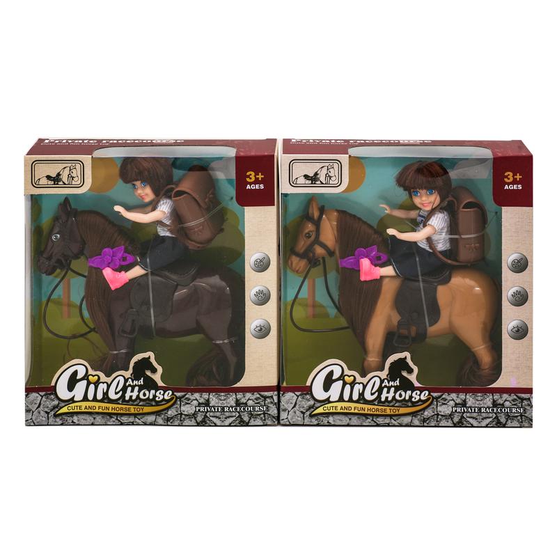 Іграшка "Лялька на коні", 2 кольори. Фігури та аксесуари в наборі.. Матеріал - пластик. Упаковка - коробка. Розмір - 21х6х19 см.
