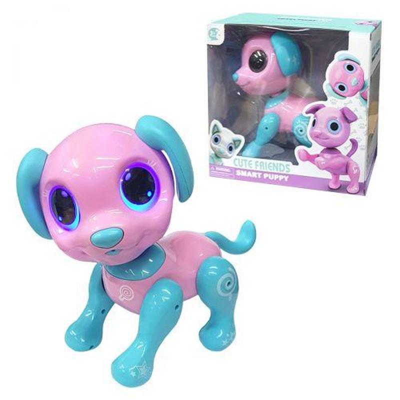 Інтерактивна іграшка "Робот-цуценя". Сенсорна іграшка має ряд цікавих функцій: виконує різні команди (сідає, встає на задні лапи), ходить, танцює під музику, гавкає. Має яскраві світлові ефекти. Виконана з якісного пластику.