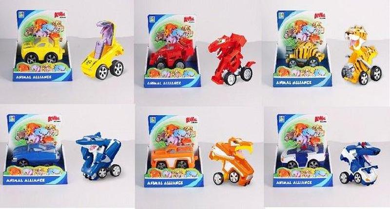 Машинка-трансформер ToyCloud Тварини KD-8815 Трансформер KD-8815, 6 різновидів, у відкр. кор.21*11*19 см, р-р іграшки — 13.5*10*7.5 см. В наявності-тигреня і жовта машинка.