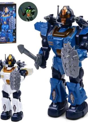 Іграшка "Робот", 33 см, 2 кольори. Самостійно рухається, є світлові та звукові ефекти. Живлення - батарейки. Матеріал - комбінований. Упаковка - коробка. Розмір - 23х11,5х33,5 см.