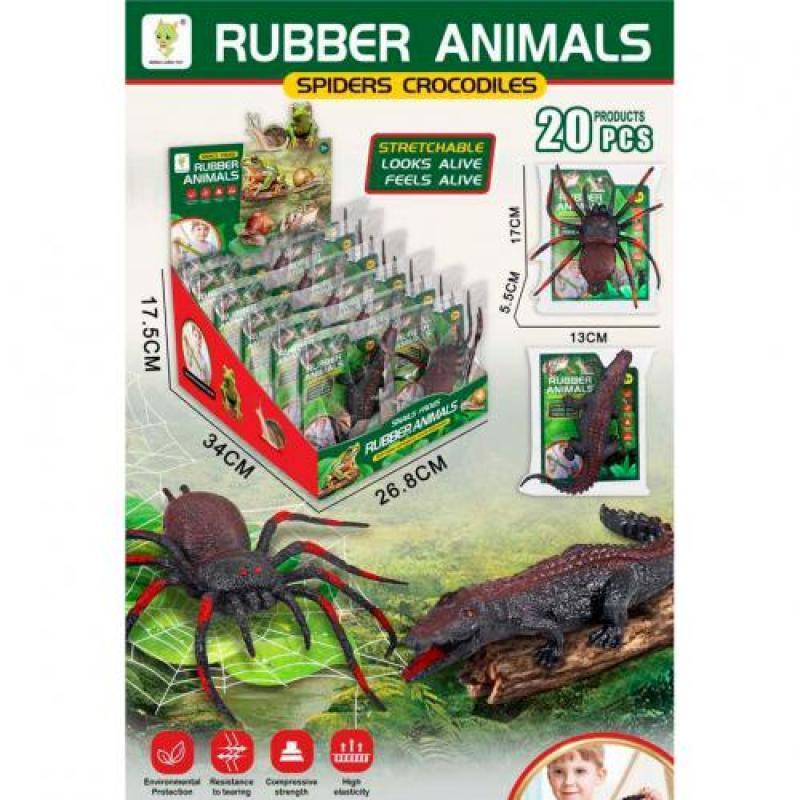 Фігурка "Rubber Animals", 2 види. Павук 17 см / крокодил 19 см. В індивідуальному пакуванні. Матеріал - ПВХ. Упаковка - дисплей, 20 шт. Розмір - 27х17,5х34 см.