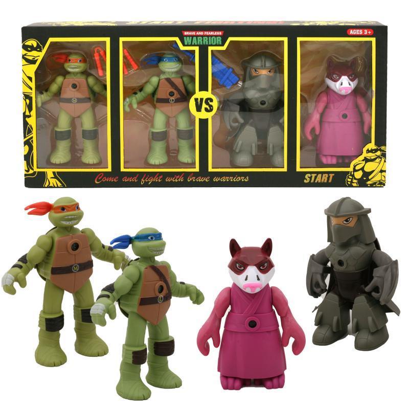 Набір фігурок "Черепашки Ніндзя", 4 персонажі. Фігурки рухають ногами та руками. Матеріал - пластик. Упаковка - коробка. Вік - від 3 років.