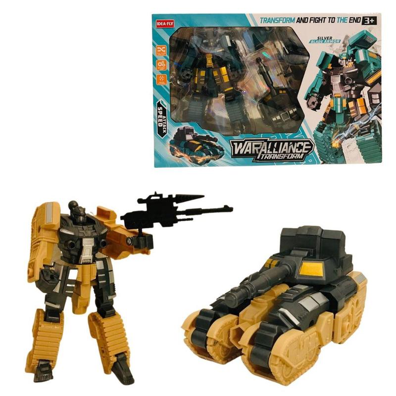 В наборе вы найдете мощного робота, который трансформируется в танк. В комплект также входит оружие и дополнителные детали, необходимые для перевоплощения.