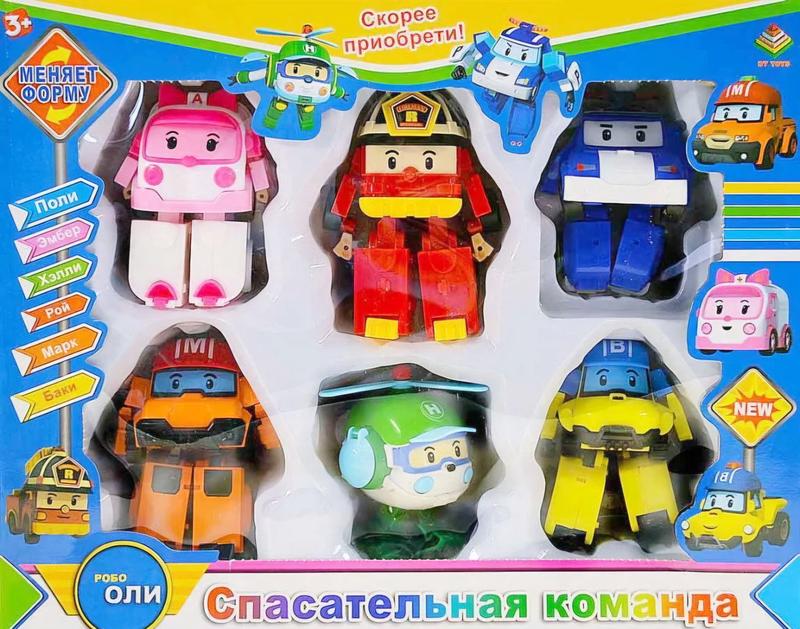 Поли Робокар набор 6шт трансформеров, герои спасатели эмбер,хели,рой,баки,марк, в коробке...