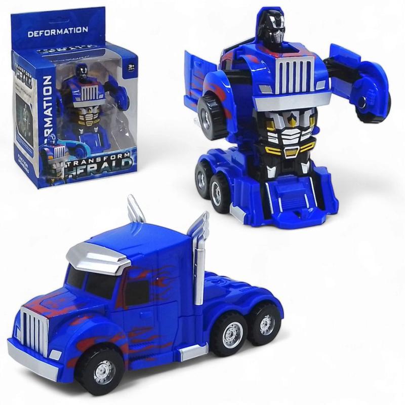 Інерційний трансформер створений за мотивами героя культового фільму "Трансформери". Іграшка оснащена інерційним механізмом. При торканні бампера або зіткненні трансформація відбувається автоматично, перетворюючи машинку на робота. Розмір у вигляді машини – 15 см.