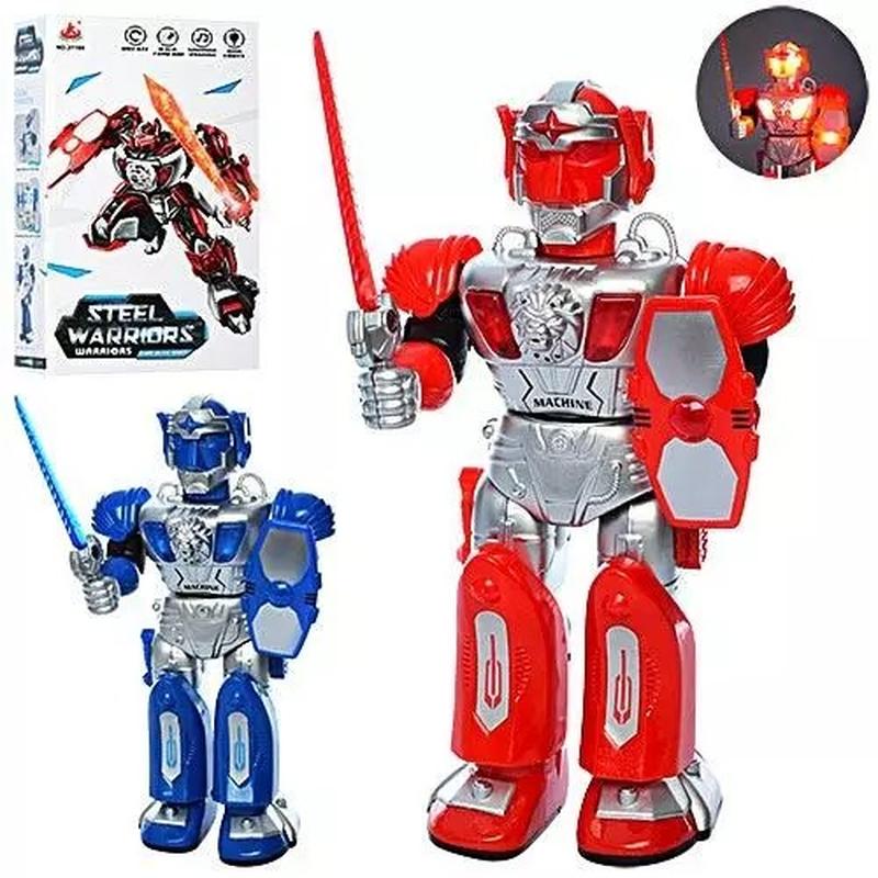 Робот на батар. 27160 2 цвета, с оружием, ходит, поверт.корпус, муз., свет., на батар., в коробке 33*19*10.5см