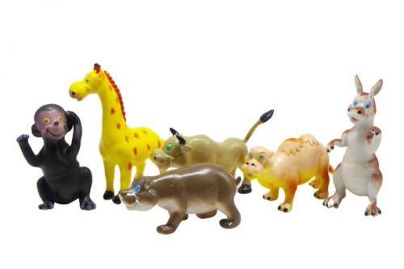 Набор "Дикие животные". В наборе 6 игрушек: медведь, верблюд, обезьяна, жираф, бык, кенгуру. Размер фигурки - 11 х 5,5 см. Упаковка: Пакет Цвет: Разноцвет Вес в упаковке: 240 г Габариты в упаковке: 20 x 4 x 27 см Габариты без упаковки: 20 x 27 см Cтрана производитель: Китай Материал: Резина Комплектация: 6 животных