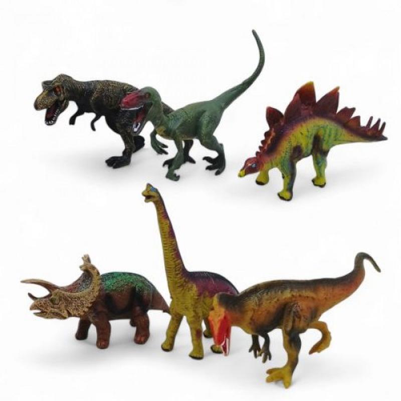 Детский набор из 6 фигурок динозавров, выполненных из прочной и безопасной резины. Каждая фигурка детализирована и окрашена в реалистичные цвета, что привлекает внимание и способствует развитию воображения ребенка. Идеально подходит для игр и коллекционирования. Размер - 14 см.