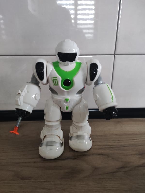 робот, ходить, грає музика, вміє стріляти, є коробка. висота робота-20см